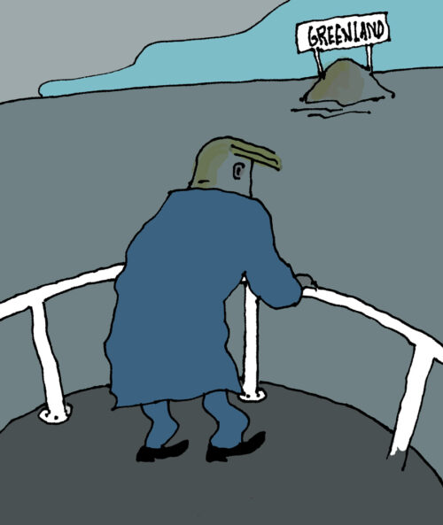 2050: Trump hat sich endgültig durchgesetzt. Grönland ist verkauft. 23. Januar 202623. Januar 2026 Raphael Wünsch Cartoon Mist, wo ist jetzt das versprochene Eis?! * * * * *Ähnliche Beiträge: Venezuela, Grönland… 2050 – Woran erinnern sich die Berliner bei Verkehrsminister Wissing? Post für Donald Trump